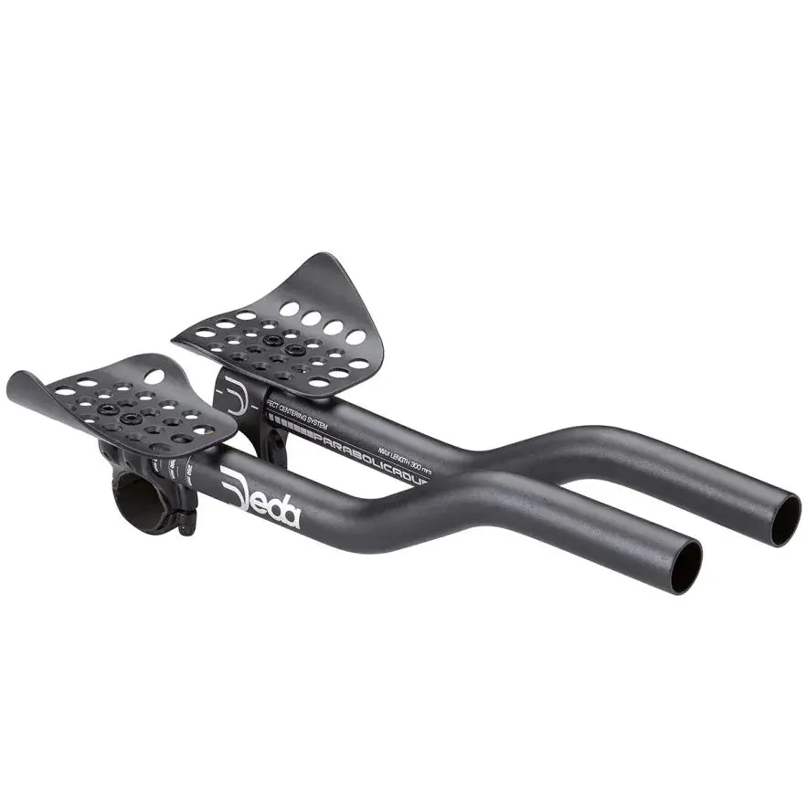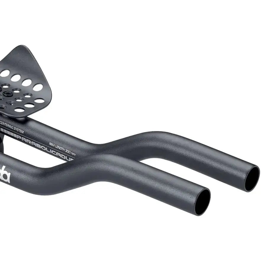Parabolica Due is the clip-on for people looking at an aerodynamic position slightly riser compared to the armrest. The product consists of three key components only, S-bend extensions that is made of 6061 aluminium, the forged alloy clamp to fix it to the handlebar and the armrest with self-adhesive velcro pad. A special spacers kit allows to increase up to 55mm the armrest height for a more comfortable position and several possibilities of adjustment. Parabolica Due is only available for 31.7 mm diameter handlebar.