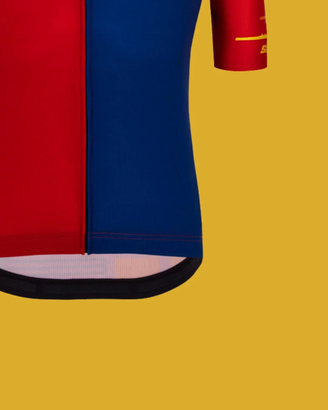 The Bologna jersey is dedicated to the second stage of the Tour de France 2024 and captures the spirit of this city, blending sporting passion and tradition in a single jersey. The kit's colors are those distinctive of Bologna's football team, while the back features a series of graphic elements that recall some of the city's most iconic symbols: the Asinelli Tower, the city's flag, Neptune's fountain trident, and tagliatelle Bolognese.