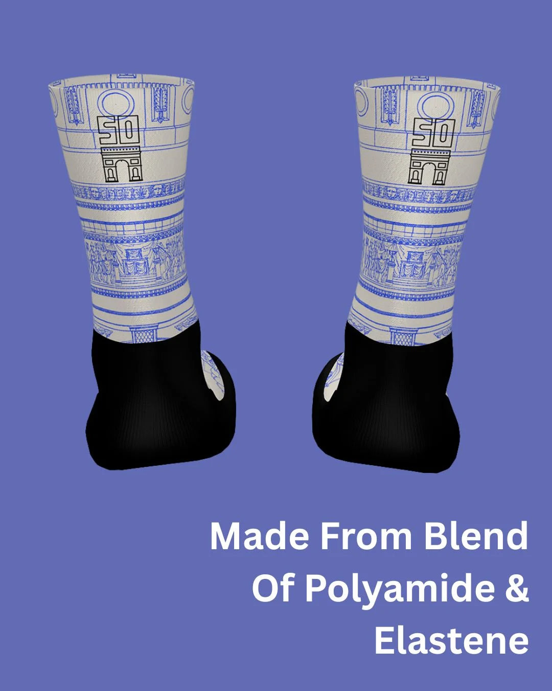 The Arc de Triomphe high-profile cycling socks are designed to ensure maximum comfort and superior performance during your rides. Part of the collection dedicated to the Tour de France Arrivée, these socks combine advanced functionality with an elegant, iconic design, perfect for celebrating the most prestigious finish in the world of cycling.