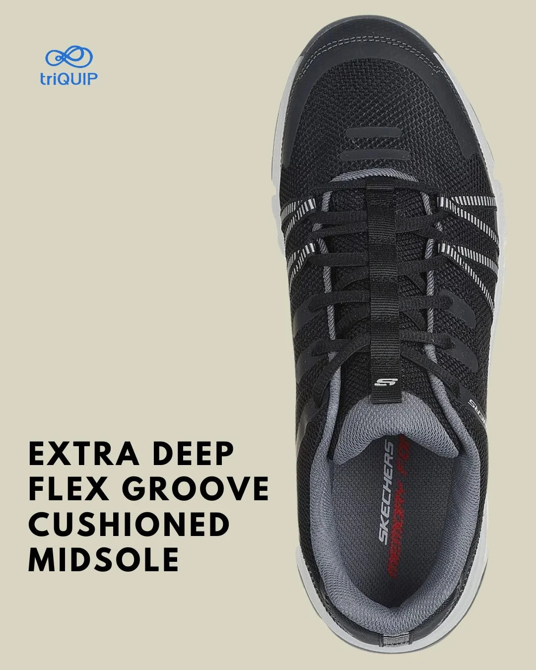 Feel the flex in athletic comfort with Skechers Summits AT - Twin Bridges. This extremely flexible and well-cushioned design features a mesh upper with hotmelt overlays, a Skechers Memory Foam™ insole, and durable deep-groove flex midsole.