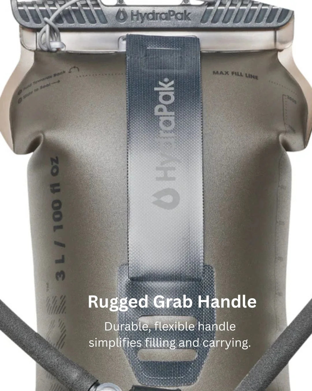 Rugged Grab Handle - Durable, flexible handle simplifies filling and carrying.