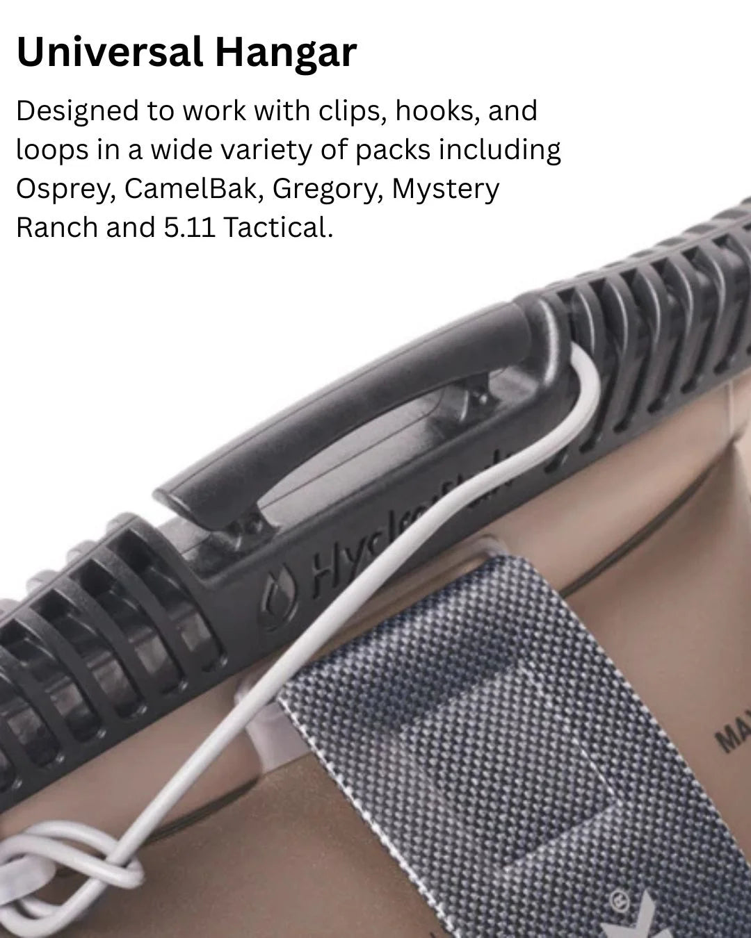 Universal Hanger - Designed to work with clips, hooks, and loops in a wide variety of packs including Osprey, CamelBak, Gregory, Mystery Ranch and 5.11 Tactical.