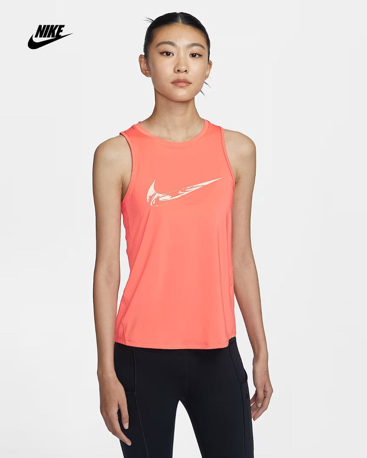 NIKE One Dri-FIT Graphic Women's Running Tank- Light Wild Mango/Crimson