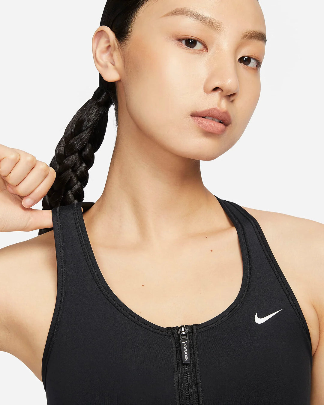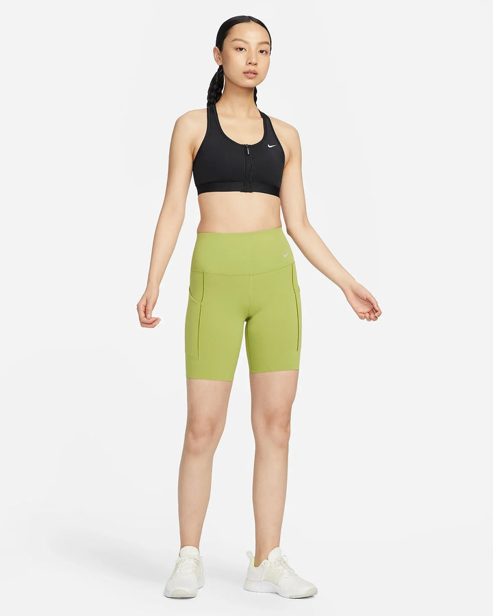 Getting in and out of your bra shouldn't be the hardest part of your workout. This Swoosh bra's front-zip design makes changing easier while still offering plenty of security with a semi-automatic locking zip. Great for training workouts and dance classes, its medium support gives you a snug hold that helps keep everything in place. Sewn-in pads stay in place so you can work hard without worrying about them shifting or folding. Plus, its sweat-ready, adaptive fabric quickly recovers its shape so you can stay comfortable throughout your workout.