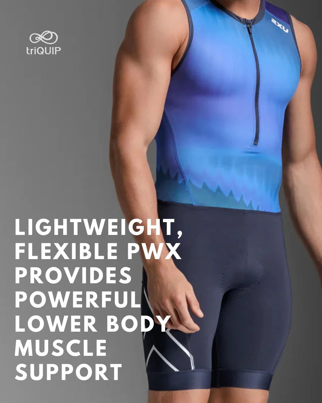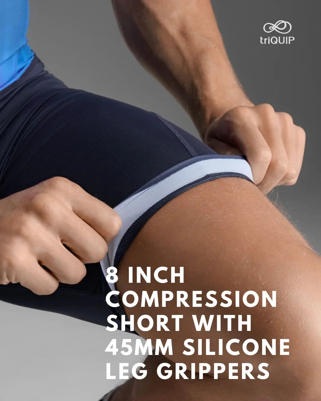 POWERFUL & LIGHTWEIGHT SUPPORT 8 inch compression short with 45mm silicone leg grippers is made from our pioneering lightweight, powerful PWX fabric reducing muscle movement and preventing fatigue.
